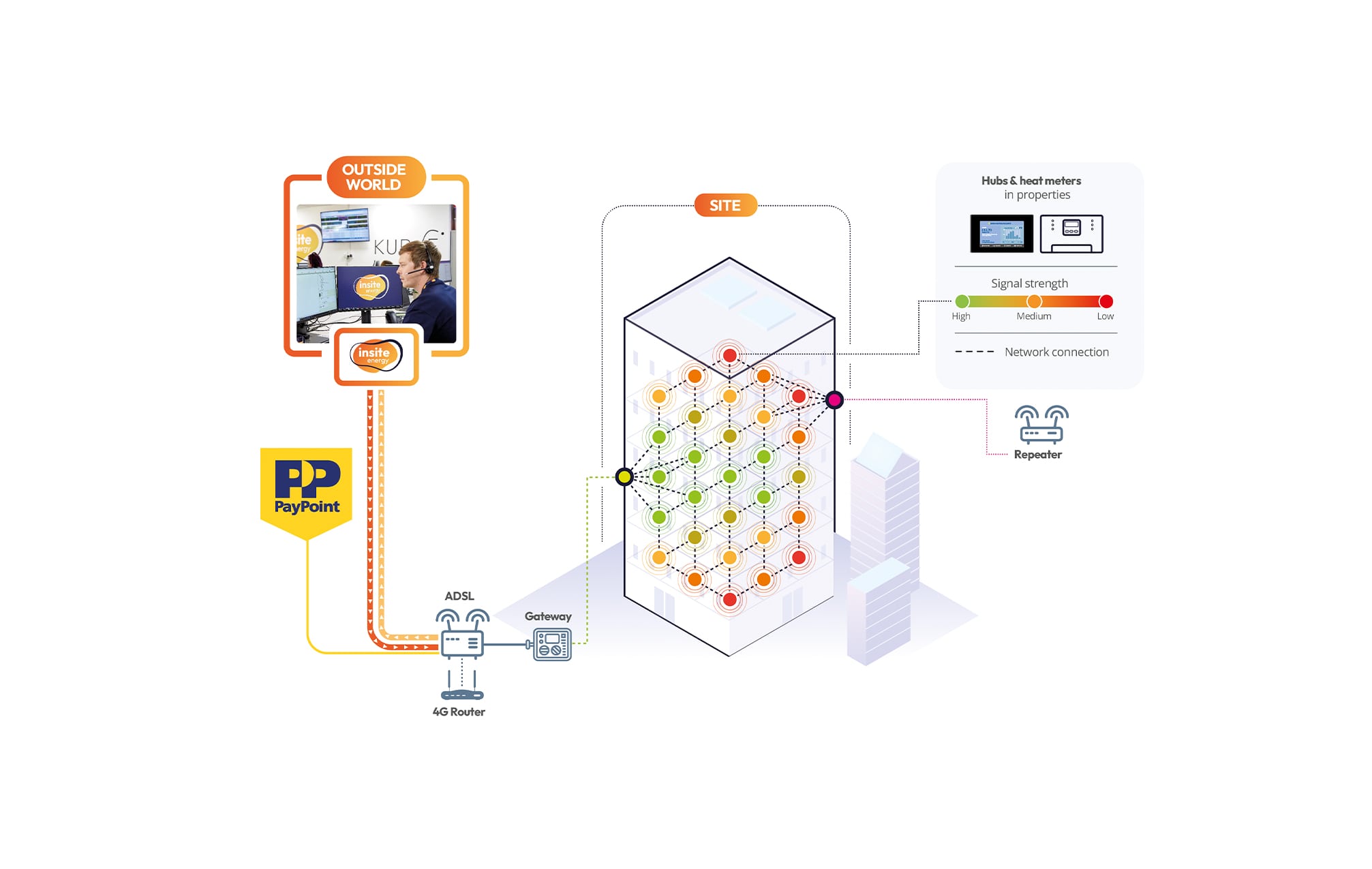 Utilising an 868MHz wireless mesh network, Guru is a great solution for where SIM cards may not work due to lack of signal. The Guru Hub II also allows residents to view and pay for their energy.